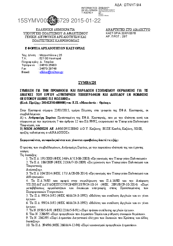 8. ΣΥΜΒΑΣΗ ΓΙΑ ΤΗΝ ΠΡΟΜΗΘΕΙΑ ΚΑΙ ΠΑΡΑΔΟΣΗ ΕΞΟΠΛΙΣΜΟΥ ΘΕΡΜΑΝΣΗΣ 297