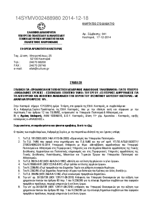 3. ΣΥΜΒΑΣΗ ΓΙΑ ΤΗΝ ΠΡΟΜΗΘΕΙΑ ΚΑΙ ΤΟΠΟΘΕΤΗΣΗ ΜΕΜΒΡΑΝΗΣ ΑΜΜΟΒΟΛΗΣ ΥΑΛΟΠΙΝΑΚΩΝ
