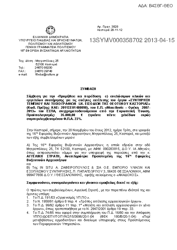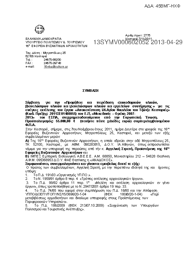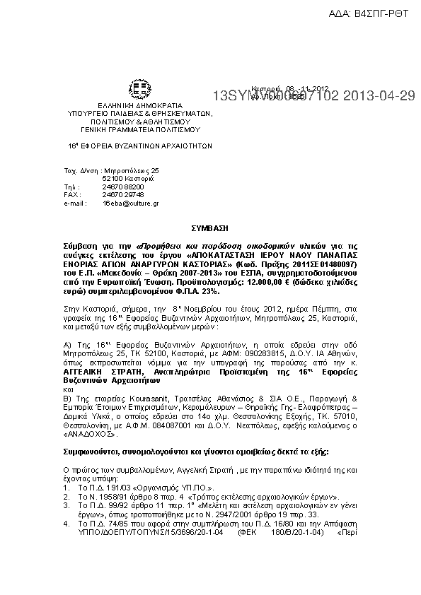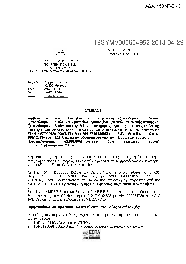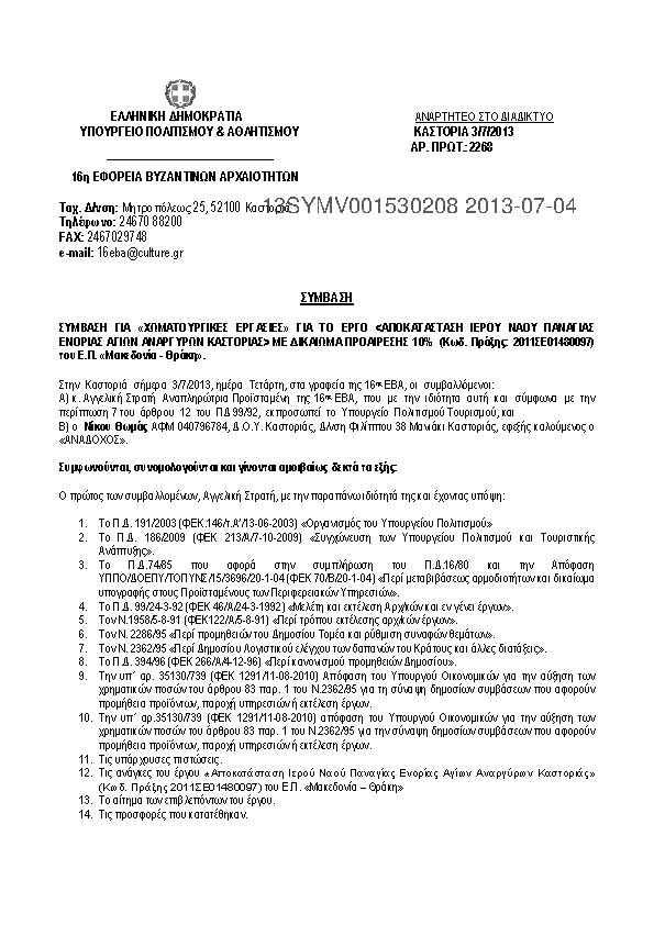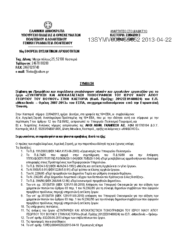 1. ΣΥΜΒΑΣΗ ΓΙΑ «ΧΩΜΑΤΟΥΡΓΙΚΕΣ ΕΡΓΑΣΙΕΣ» ΓΙΑ ΤΟ ΕΡΓΟ