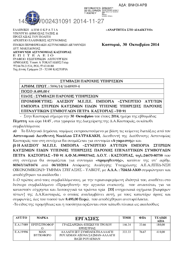 3. ΣΥΜΒΑΣΗ ΠΑΡΟΧΗΣ ΥΠΗΡΕΣΙΩΝ ΕΠΙΣΚΕΥΗΣ ΥΠΗΡΕΣΙΑΚΩΝ ΟΧΗΜΑΤΩΝ Δ.Α.ΚΑΣΤΟΡΙΑΣ