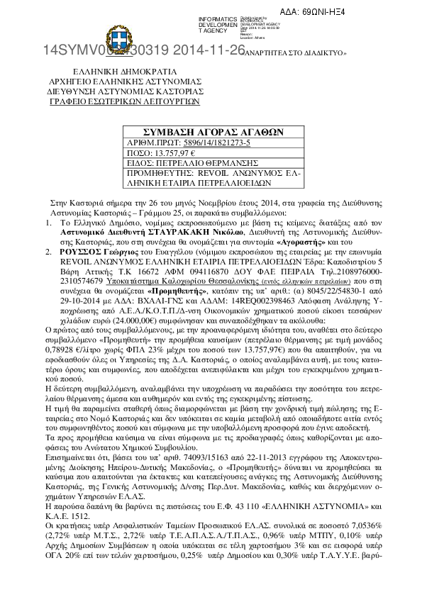 5. Σύμβαση προμήθειας υγρών καυσίμων (πετρέλαιο θέρμανσης) της Δ.Α. Καστοριάς.