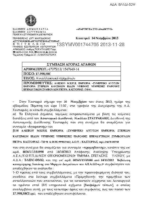 8. ΣΥΜΒΑΣΗ ΑΓΟΡΑΣ ΑΝΤΑΛΛΑΚΤΙΚΩΝ ΥΠΗΡΕΣΙΑΚΩΝ ΟΧΗΜΑΤΩΝ ΑΔ. ΚΑΣΤΟΡΙΑΣ