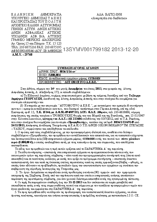 5. Σύμβαση προμήθειας καυσίμων κίνησης μηνός Δεκεμβρίου 2013, προς κάλυψη αναγκών της Α.Δ. Καστοριάς