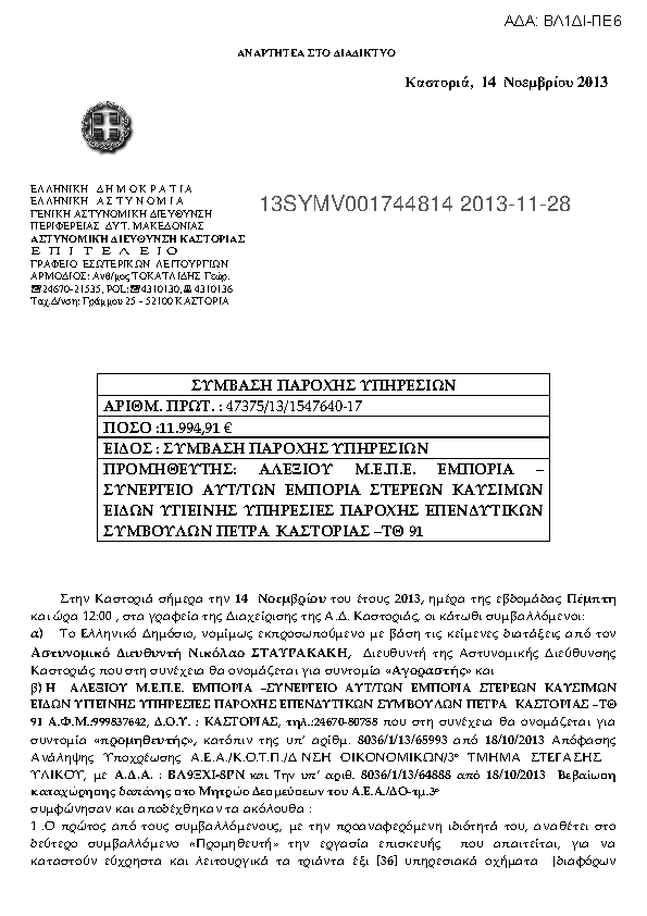 7. ΣΥΜΒΑΣΗ ΑΜΟΙΒΗΣ ΕΡΓΑΣΙΑΣ ΕΠΙΣΚΕΥΗΣ ΥΠΗΡΕΣΙΑΚΩΝ ΟΧΗΜΑΤΩΝ ΑΔ. ΚΑΣΤΟΡΙΑΣ