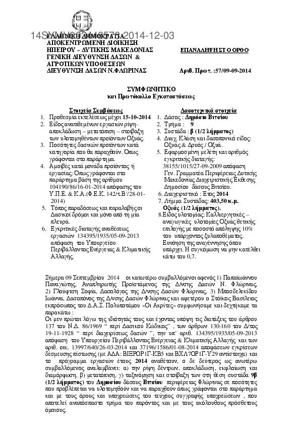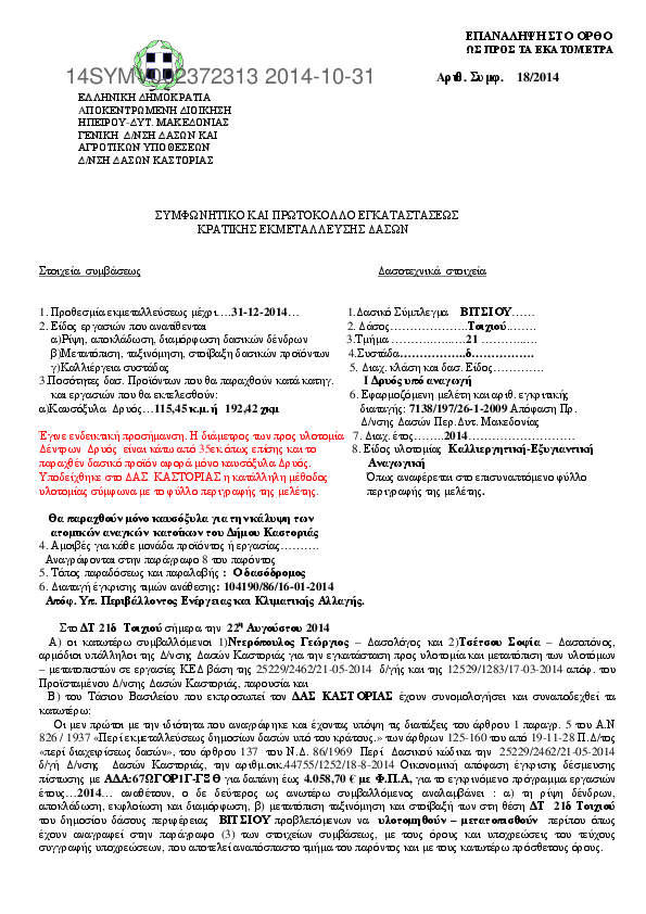 8. ΕΡΓΟΛΑΒΙΚΟ ΣΥΜΦΩΝΗΤΙΚΟ "ΠΡΟΣΤΑΣΙΑ ΚΑΙ ΑΝΑΒΑΘΜΙΣΗ ΔΑΣΩΝ 2014