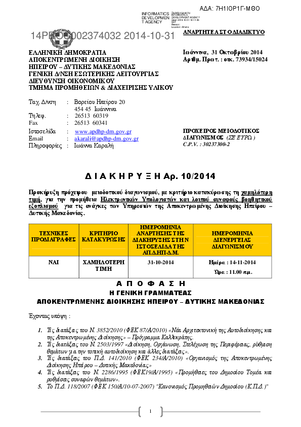 Αναζήτηση σε προκηρύξεις και συμβάσεις για: