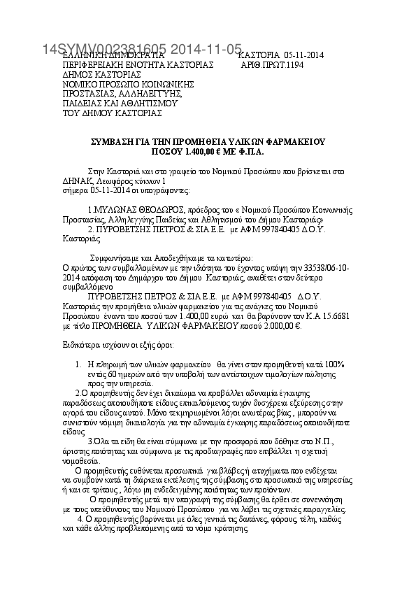 3. ΣΥΜΒΑΣΗ ΠΡΟΜΗΘΕΙΑΣ ΥΛΙΚΩΝ ΦΑΡΜΑΚΕΙΟΥ