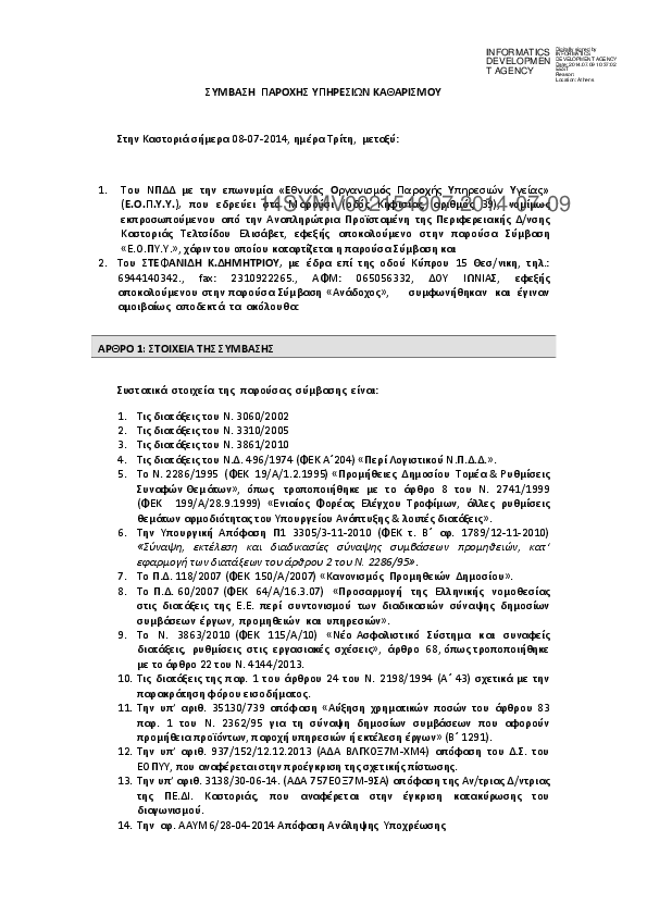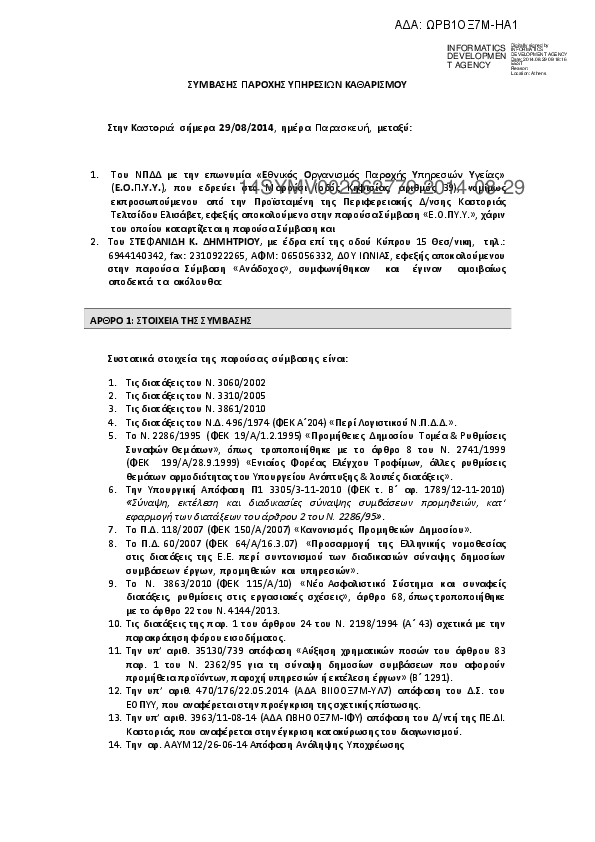 7. ΣΥΜΒΑΣΗ ΠΑΡΟΧΗΣ ΥΠΗΡΕΣΙΩΝ ΚΑΘΑΡΙΣΜΟΥ ΜΟΝΑΔΑΣ ΥΓΕΙΑΣ ΚΑΣΤΟΡΙΑΣ