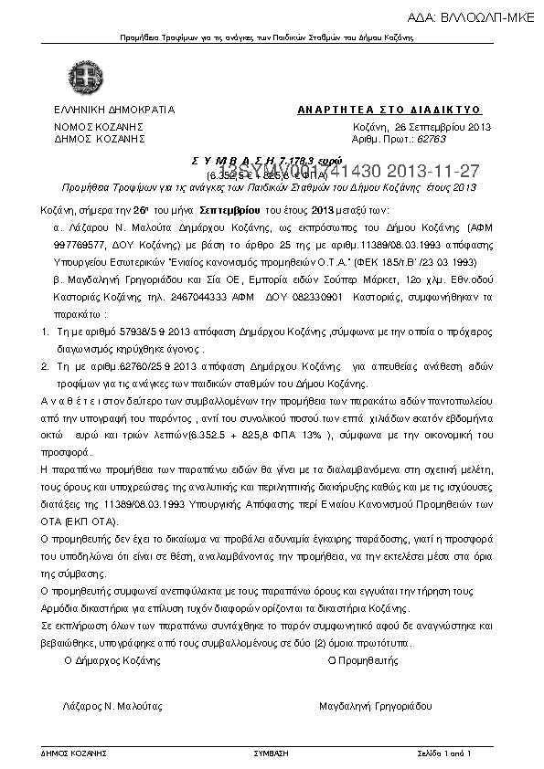 1. ΠΡΟΜΗΘΕΙΑ ΤΡΟΦΙΜΩΝ ΓΙΑ ΤΙΣ ΑΝΑΓΚΕΣ ΤΩΝ ΠΑΙΔΙΚΩΝ ΣΤΑΘΜΩΝ ΤΟΥ ΔΗΜΟΥ ΚΟΖΑΝΗΣ