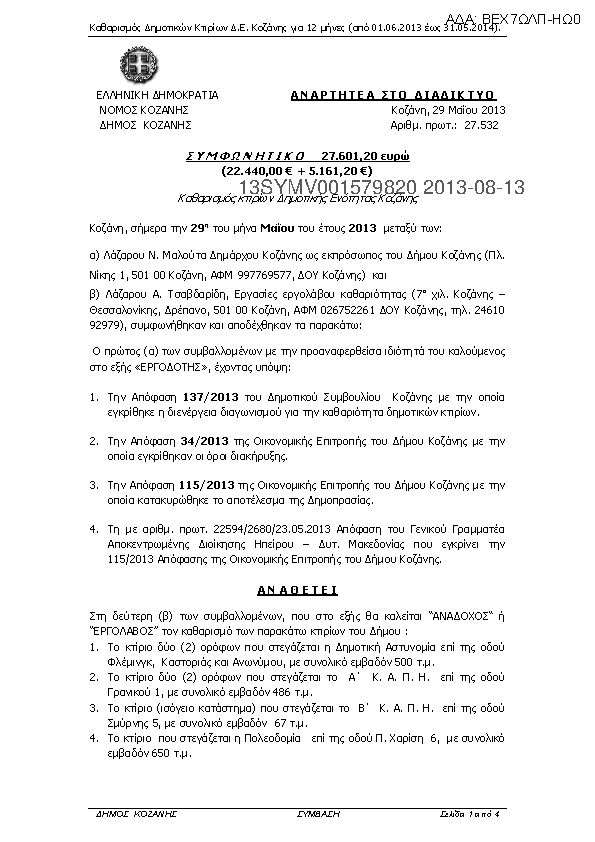 2. Καθαρισμός κτιρίων Δημοτικής Ενότητας Κοζάνης