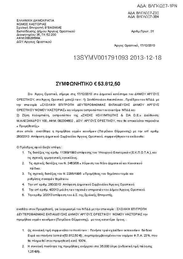 8. Προμήθεια υγρών καυσίμων για τις σχολικές μονάδες της δευτεροβάθμιας επιτροπής Δήμου Άργους Ορεστικο