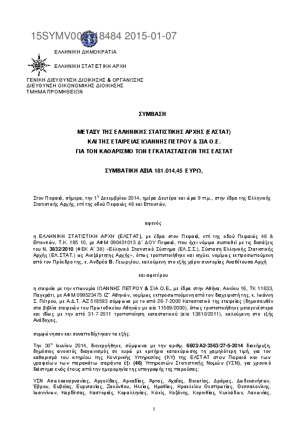 7. Σύμβαση για τον καθαρισμό των εγκαταστάσεων της ΕΛΣΤΑΤ