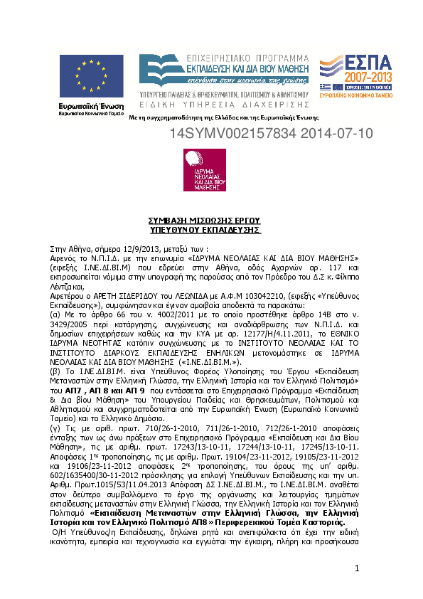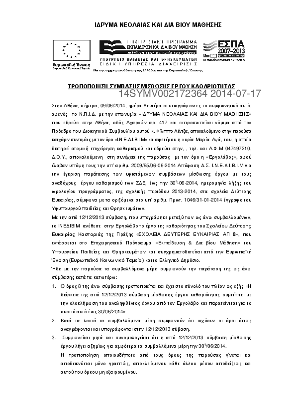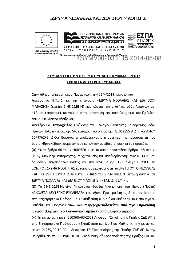 1. ΣΥΜΒΑΣΗ ΜΙΣΘΩΣΗΣ ΕΡΓΟΥ ΟΙΚΟΝΟΜΙΚΟΥ ΔΙΑΧΕΙΡΙΣΤΗ ΣΧΟΛΕΙΩΝ ΔΕΥΤΕΡΗΣ ΕΥΚΑΙΡΙΑΣ (ΣΔΕ) ΠΡΑΞΗΣ ΣΔΕ ΑΠ8