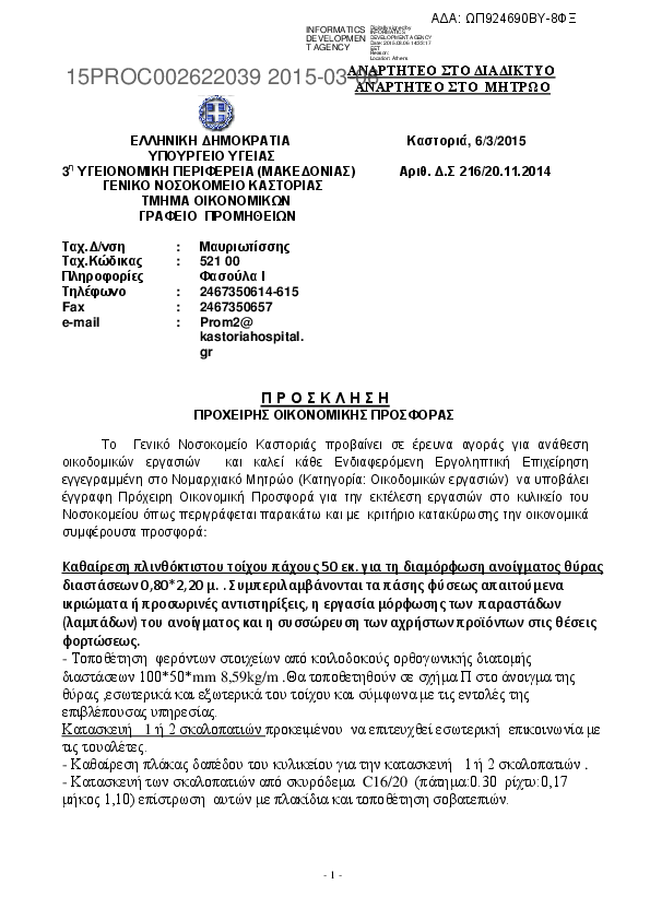 Αναζήτηση σε προκηρύξεις και συμβάσεις για: