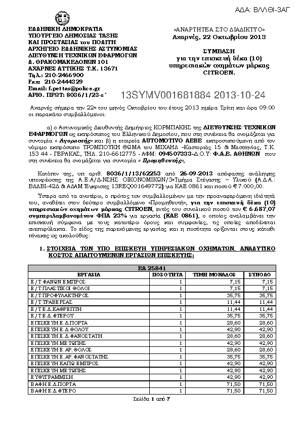 10. ΣΥΜΒΑΣΗ για την επισκευή δέκα (10) υπηρεσιακών οχημάτων μάρκας CITROEN.