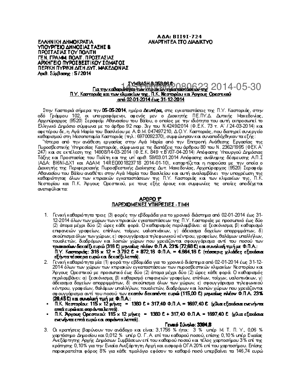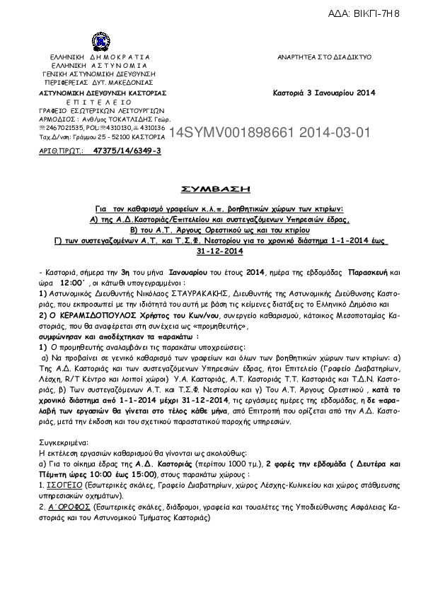7. Σύμβαση για την καθαριότητα των κτιριακών εγκαταστάσεων της Π.Υ. Καστοριάς