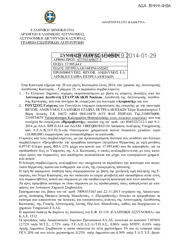 3. Σύμβαση προμήθειας πετρελαίου θέρμανσης προς κάλυψη των αναγκών της Α.Δ. Καστοριάς