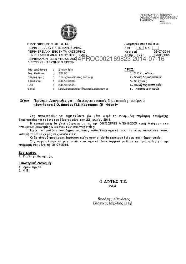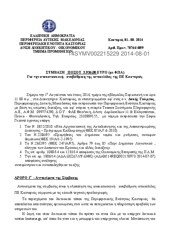 7. Σύμβαση για την ανακατασκευή- αναβάθμιση της ιστοσελίδας της ΠΕ Καστοριάς