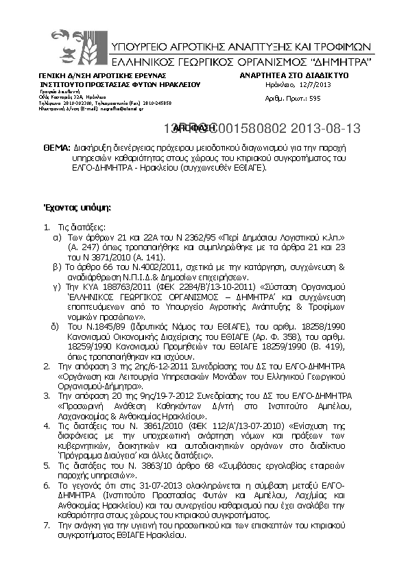 1. Διακήρυξη διενέργειας πρόχειρου μειοδοτικού διαγωνισμού για την παροχή υπηρεσιών καθαριότητας στους χώρους του κτιριακού συγκροτήματος του ΕΛΓΟ