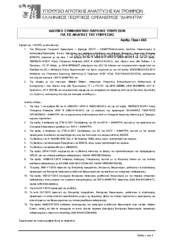 3. ΙΔΙΩΤΙΚΟ ΣΥΜΦΩΝΗΤΙΚΟ ΠΑΡΟΧΗΣ ΥΠΗΡΕΣΙΩΝ ΓΙΑ ΤΙΣ ΑΝΑΓΚΕΣ ΤΗΣ ΥΠΗΡΕΣΙΑΣ