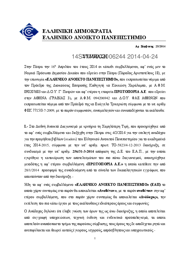 1. Προμήθεια Βιβλίων (readers) που διανέμονται στους φοιτητές του ΕΑΠ
