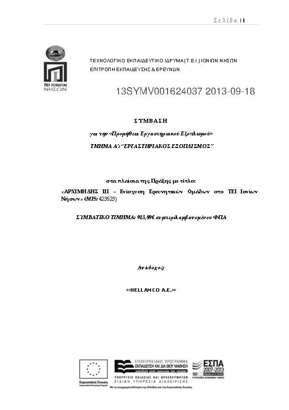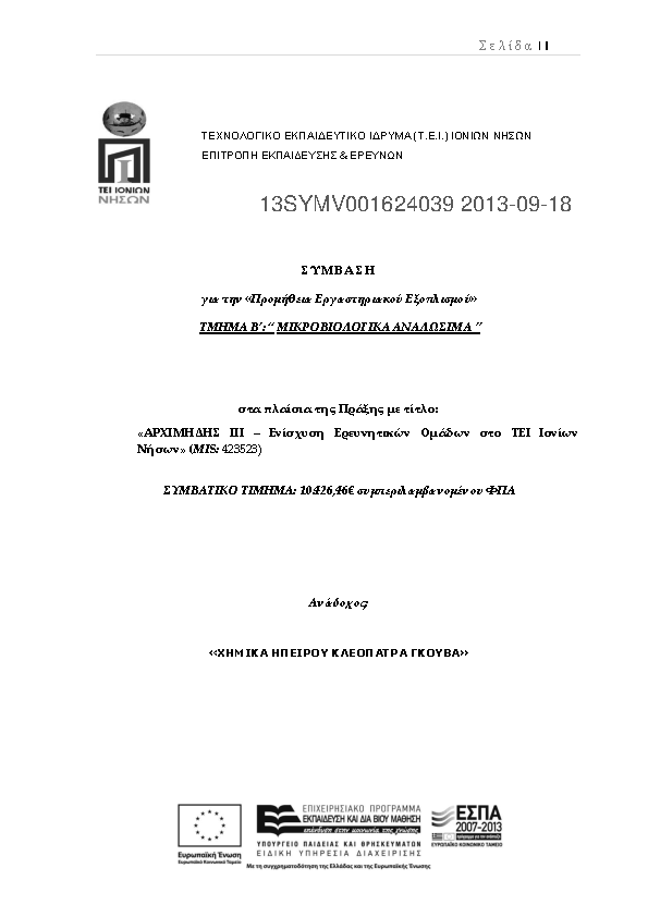 1. ΔΙΑΚΗΡΥΞΗ ΠΡΟΧΕΙΡΟΥ ΔΙΑΓΩΝΙΣΜΟΥ ΜΕ ΔΗΜΟΣΙΕΥΣΗ για την«Προμήθεια Εργαστηριακών Αναλωσίμων»στα πλαίσια της πράξης: «Ανάδειξη του Τεχνολογικού Ιδρύματος Ιονίων Νήσων ως Διεθνούς Πόλου Εκπαίδευσης και Καινοτομίας»