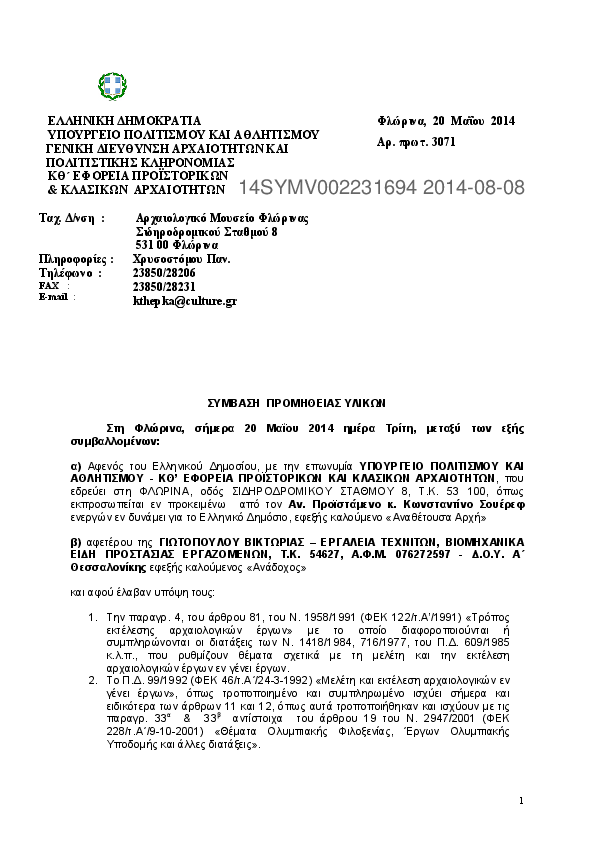 1. ΣΥΜΒΑΣΗ ΕΡΓΑΣΙΩΝ ΜΗΧΑΝΙΚΗΣ ΑΠΟΜΑΚΡΥΝΣΗΣ ΦΥΤΙΚΗΣ ΓΗΣ ΓΙΑ ΑΠΟΚΑΛΥΨΗ ΑΡΧΑΙΟΤΗΤΩΝ ΚΑΙ ΑΠΟΜΑΚΡΥΝΣΗ ΜΠΑΖΩΝ
