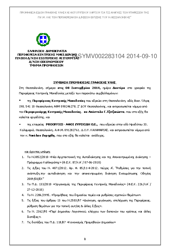5. Προμήθεια ειδών γραφικής ύλης για την υποστήριξη των Υπηρεσιών της Περιφέρειας Κεντρικής Μακεδονίας