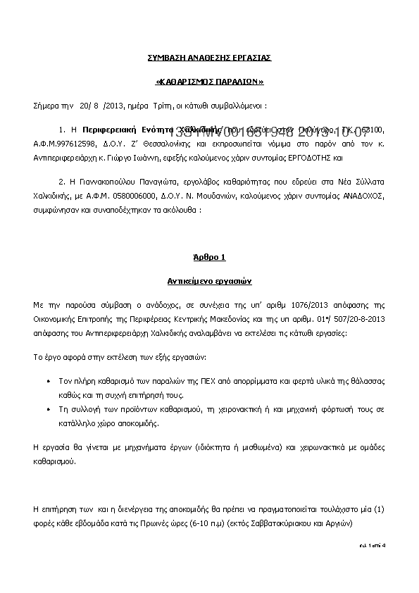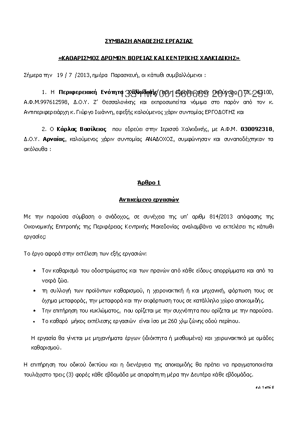4. ΣΥΜΒΑΣΗ ΑΝΑΘΕΣΗΣ ΕΡΓΑΣΙΑΣ «ΚΑΘΑΡΙΣΜΟΣ ΔΡΟΜΩΝ ΒΟΡΕΙΑΣ ΚΑΙ ΚΕΝΤΡΙΚΗΣ ΧΑΛΚΙΔΙΚΗΣ»