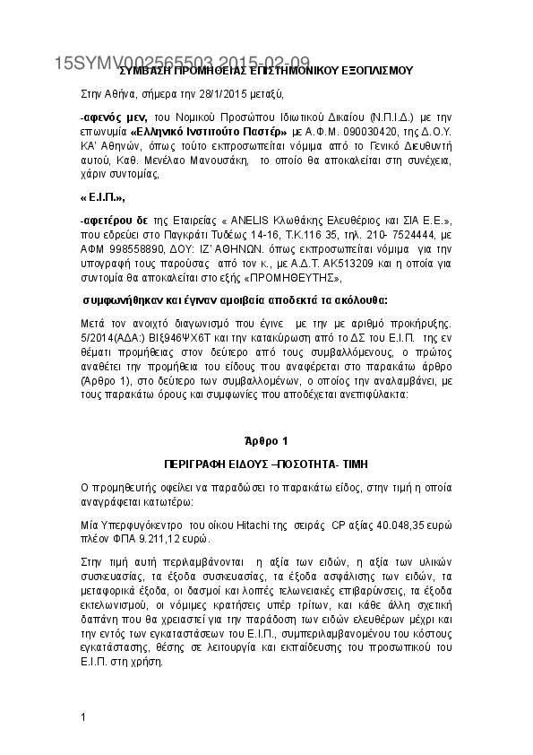 2. Σύμβαση προμήθειας Υπερφυγοκέντρου.