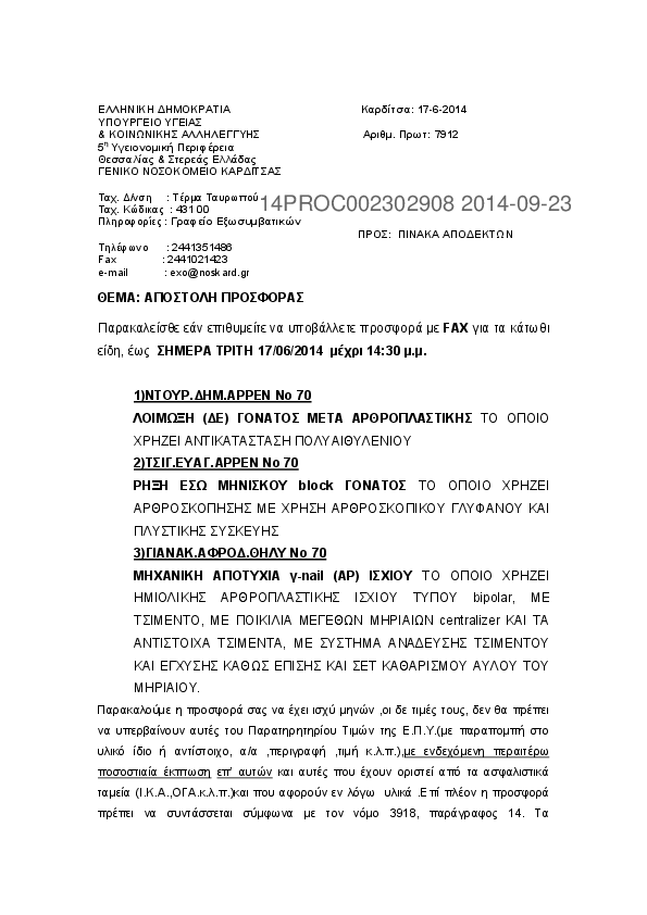 3. ΔΙΕΘΝΗΣ ΔΗΜΟΣΙΟΣ ΔΙΑΓΩΝΙΣΜΟΣ ΙΑΤΡΟΤΕΧΝΟΛΟΓΙΚΟΥ ΕΞΟΠΛΙΣΜΟΥ Γ.Ν. ΚΑΡΔΙΤΣΑΣ