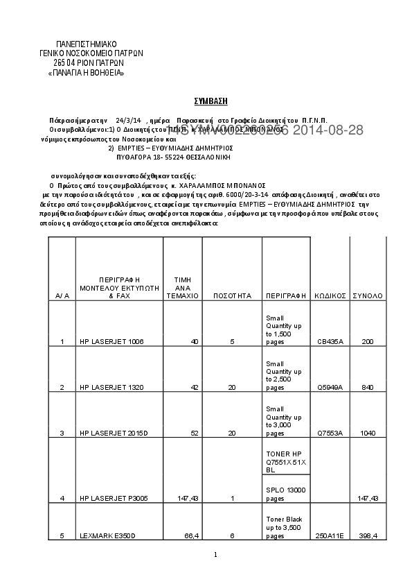 1. ΣΥΜΒΑΣΗ ΓΙΑ ΤΟΝΕΡ