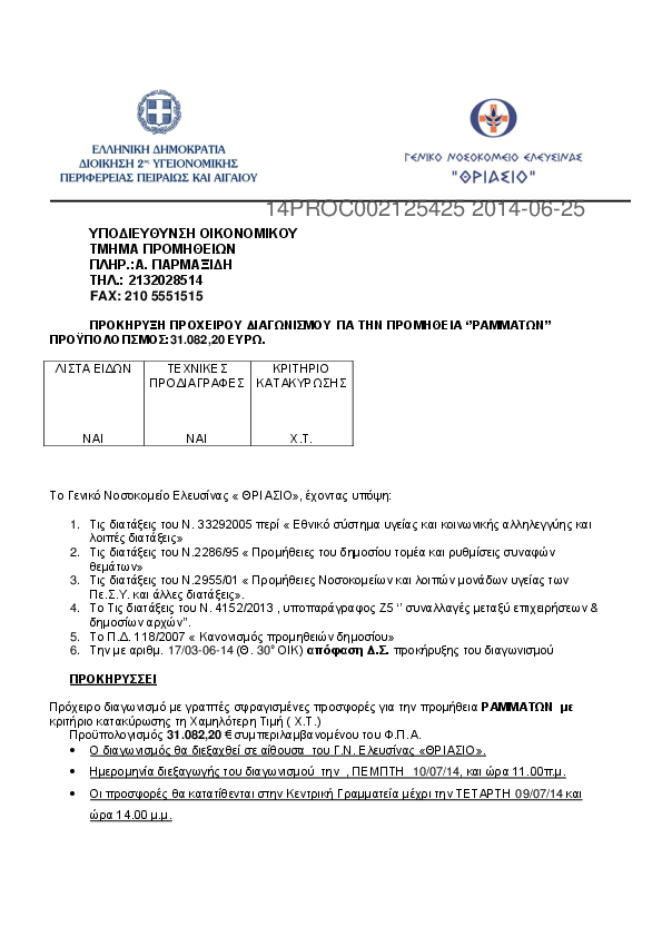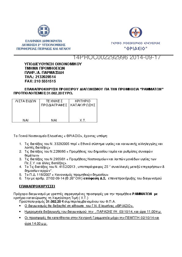 Αναζήτηση σε προκηρύξεις και συμβάσεις για:
