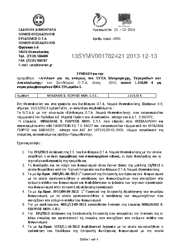 3. Σύμβαση για προμήθεια αντλιών για ΧΥΤΑ Μαυροράχης, Ταγαράδων και Ανακύκλωσης Συνδέσ. ΟΤΑ Ν.Θεσ/νίκ.