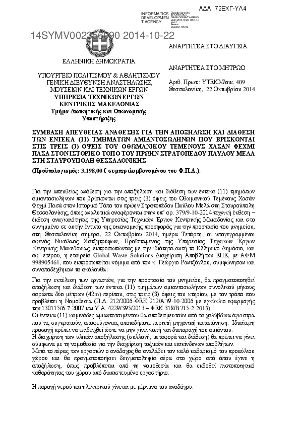 1. ΣΥΜΒΑΣΗ ΑΠ. ΑΝΑΘΕΣΗΣ ΓΙΑ ΑΠΟΞΗΛΩΣΗ ΚΑΙ ΔΙΑΘΕΣΗ ΑΜΙΑΝΤΟΣΩΛΗΝΩΝ ΣΤΟ ΟΘ. ΤΕΜΕΝΟΣ ΧΑΣΑΝ ΦΕΧΜΙ ΠΑΣΑ