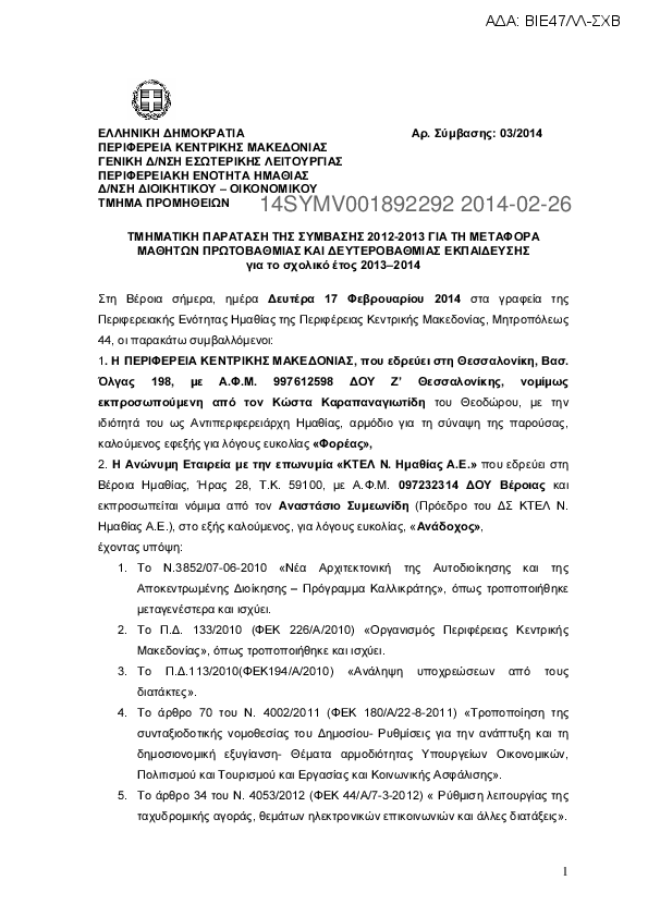 1. ΤΜΗΜΑΤΙΚΗ ΠΑΡΑΤΑΣΗ ΤΗΣ ΣΥΜΒΑΣΗΣ 2012-13 ΜΕΤΑΦΟΡΑΣ ΜΑΘΗΤΩΝ Α/ΘΜΙΑΣ&Β/ΘΜΙΑΣ ΕΩΣ 31.03.13