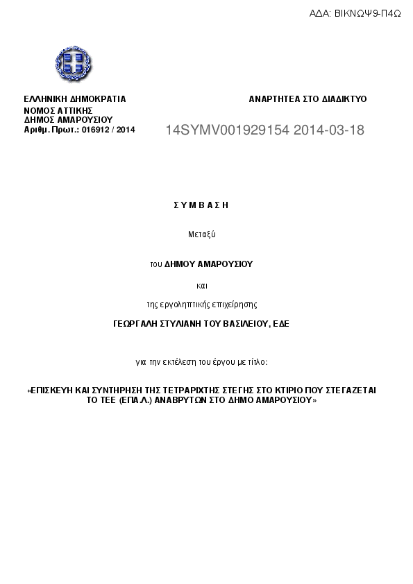 5. ΕΠΙΣΚΕΥΗ ΚΑΙ ΣΥNΤΗΡΗΣΗ ΤΗΣ ΤΕΤΡΑΡΙΧΤΗΣ ΣΤΕΓΗΣ ΣΤΟ ΚΤΙΡΙΟ ΠΟΥ ΣΤΕΓΑΖΕΤΑΙ ΤΟ ΤΕΕ ΑΝΑΒΡΥΤΩΝ ΣΤO ΜΑΡΟΥΣΙ