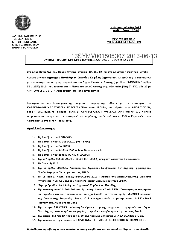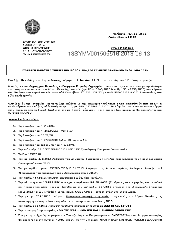 2. ΣΥΝΔΡΟΜΗ ΔΗΜΟΥ ΠΕΝΤΕΛΗΣ ΣΕ ΔΙΑΔΙΚΤΥΑΚΗ ΒΑΣΗ ΔΕΔΟΜΕΝΩΝ ΤΗΣ ΕΤΑΙΡΕΙΑΣ ΝΟΜΟΤΕΛΕΙΑ ΕΠΕ