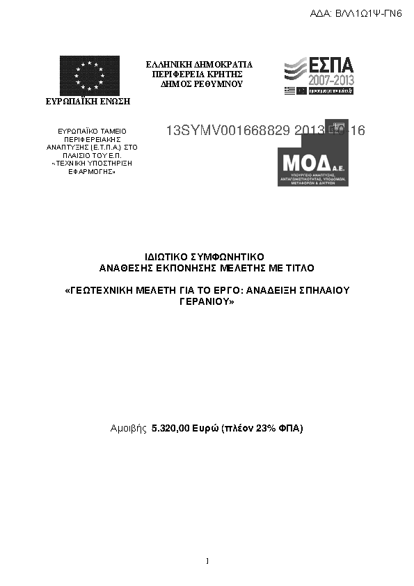 5. Γεωτεχνική μελέτη για το έργο : Ανάδειξη σπηλαίου Γερανίου».