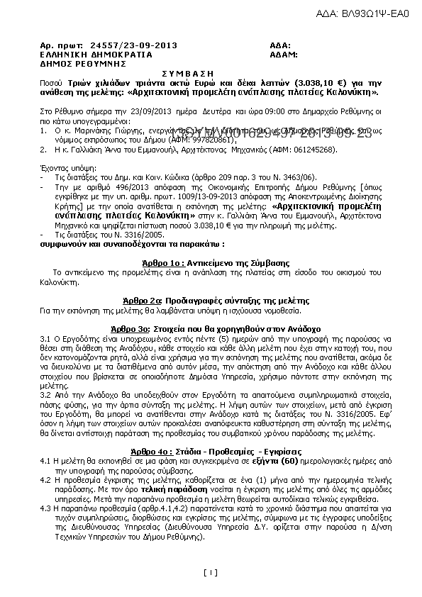 1. Περιβαλλοντική αδειοδότηση έργων ανάπλασης για ΟΣΑΠΥ Δήμου Ρεθύμνης