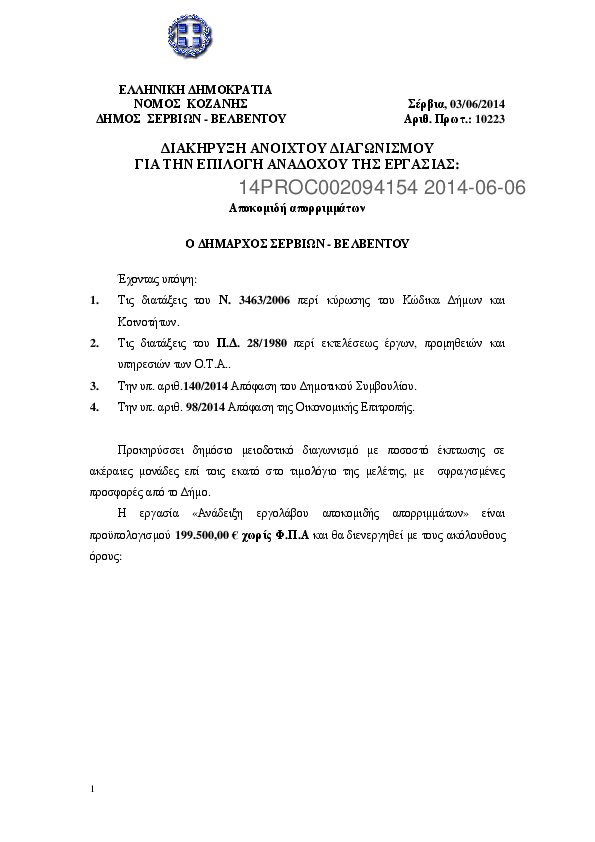 Αναζήτηση στο ΚΗΜΔΗΣ