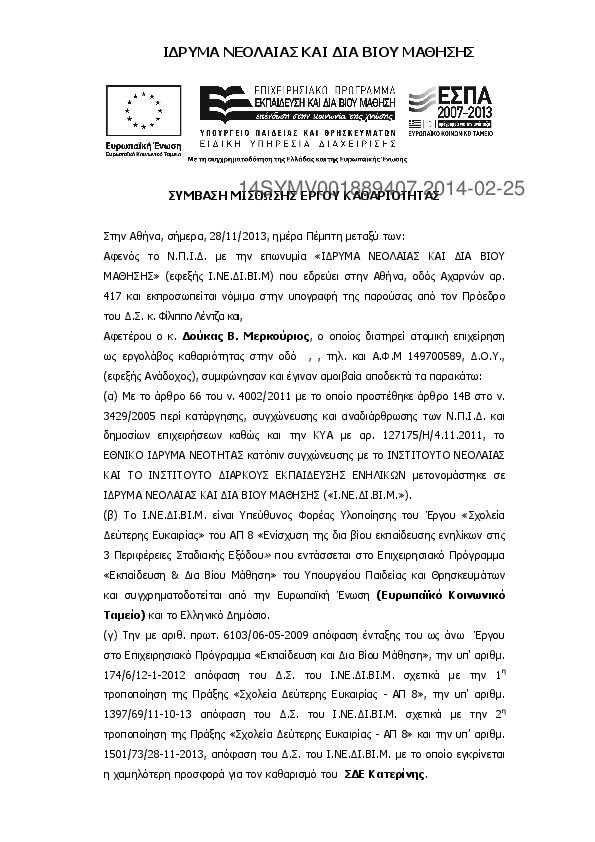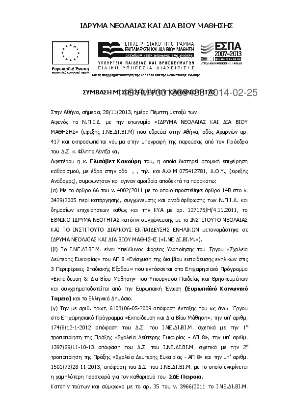 1. ΣΥΜΒΑΣΗ ΜΙΣΘΩΣΗΣ ΕΡΓΟΥ ΚΑΘΑΡΙΟΤΗΤΑΣ