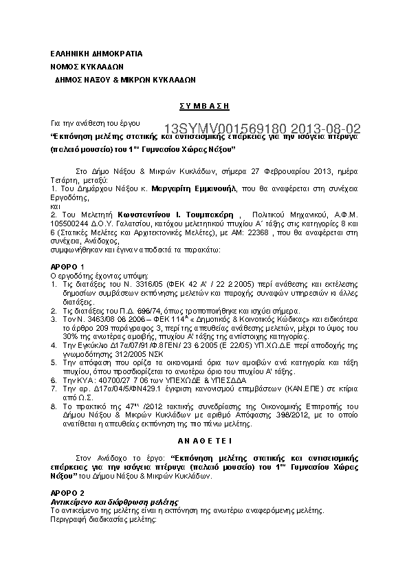 Αναζήτηση σε προκηρύξεις και συμβάσεις για: