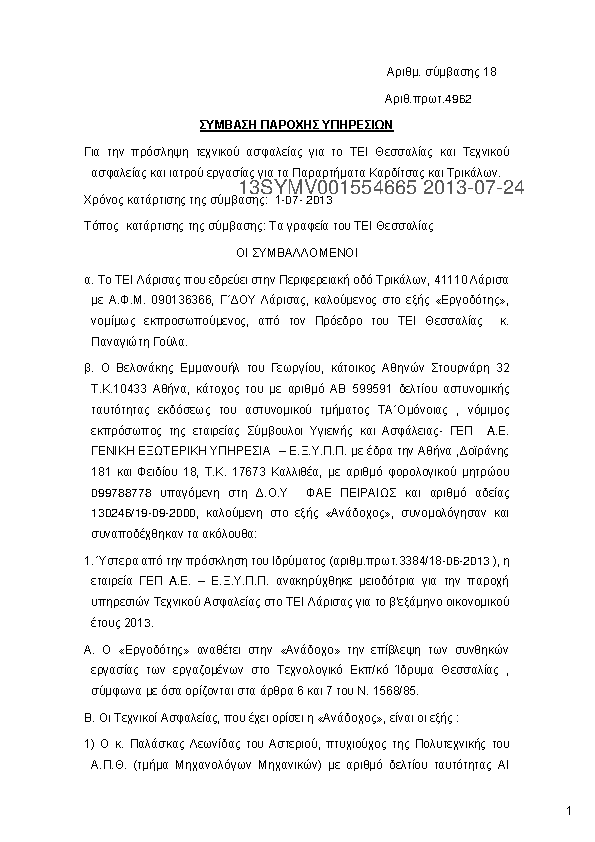 7. ΠΡΟΣΛΗΨΗ ΤΕΧΝΙΚΟΥ ΑΣΦΑΛΕΙΑΣ ΓΙΑ ΤΟ ΤΕΙ ΘΕΣΣΑΛΙΑΣ ΚΑΙ ΙΑΤΡΟΥ ΕΡΓΑΣΙΑΣ