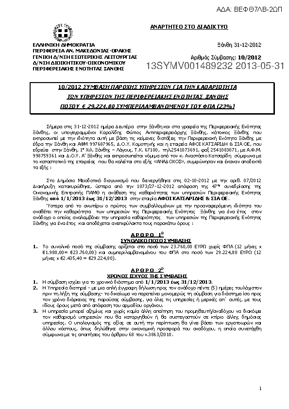 1. ΔΙΑΓΩΝΙΣΜΟΣ ΓΙΑ ΤΗΝ ΚΑΘΑΡΙΟΤΗΤΑ ΤΩΝ ΥΠΗΡΕΣΙΩΝ ΤΗΣ ΠΕ ΞΑΝΘΗΣ ΕΤΟΥΣ 2014