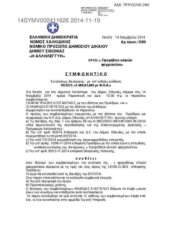 Αναζήτηση σε προκηρύξεις και συμβάσεις για: