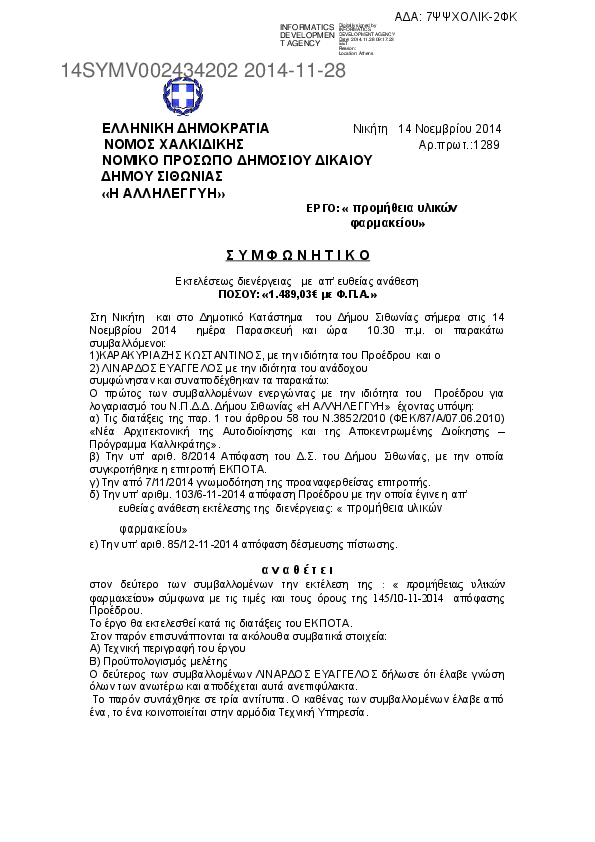 2. ΣΥΜΦΩΝΗΤΙΚΟ ΠΡΟΜΗΘΕΙΑΣ ΥΛΙΚΩΝ ΦΑΡΜΑΚΕΙΟΥ