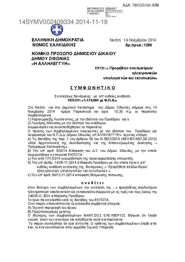 5. ΣΥΜΦΩΝΗΤΙΚΟ ΠΡΟΜΗΘΕΙΑΣ ΑΝΑΛΩΣΙΜΩΝ ΥΠΟΛΟΓΙΣΤΩΝ ΚΑΙ ΕΚΤΥΠΩΤΩΝ