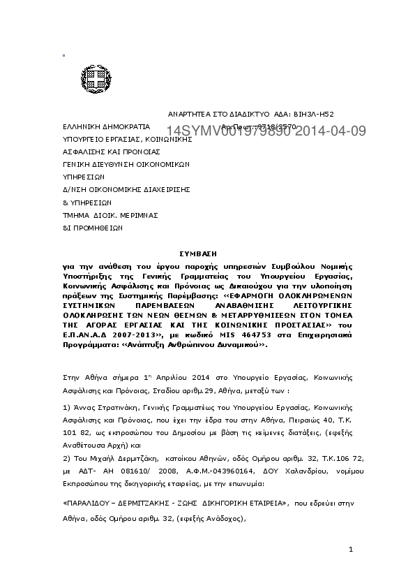 4. ΣΥΜΒΑΣΗ Για το υποέργο 2: «Απλούστευση Διαδικασιών του Σώματος Επιθεώρησης Εργασίας (Σ.ΕΠ.Ε.)» (κωδ