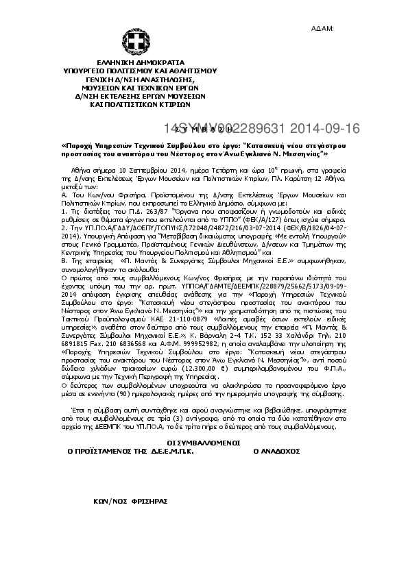 7. «Παροχή Υπηρεσιών Τεχνικού Συμβούλου στο έργο: “Κατασκευή νέου στεγάστρου προστασίας του ανακτόρου τ